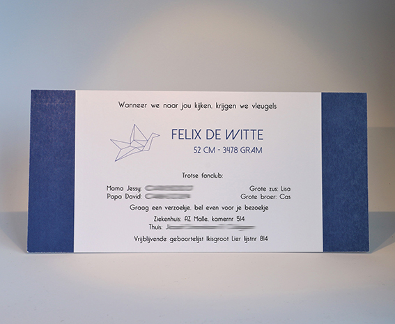 Wens je graag meer info, een specifieke aanpassing in tekst of kleur of bijhorende wikkels/stickers ?  Stuur een mailtje naar info@prettyprints.be met als referentie de naam van het kaartje.
