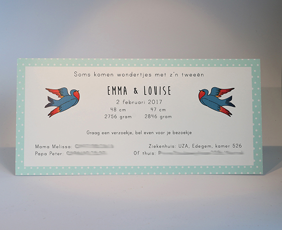 Wens je graag meer info, een specifieke aanpassing in tekst of kleur of bijhorende wikkels/stickers ?  Stuur een mailtje naar info@prettyprints.be met als referentie de naam van het kaartje.